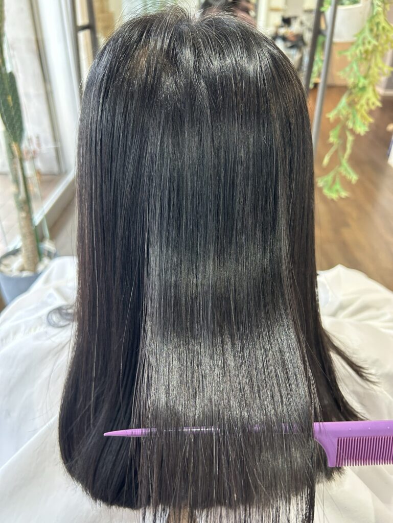 縮毛矯正をしていただくと乾かすだけでまとまったりサラッとした質感になり生活が少し楽に感じていただけるかと思います。